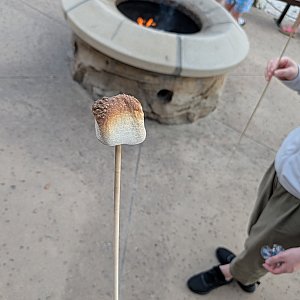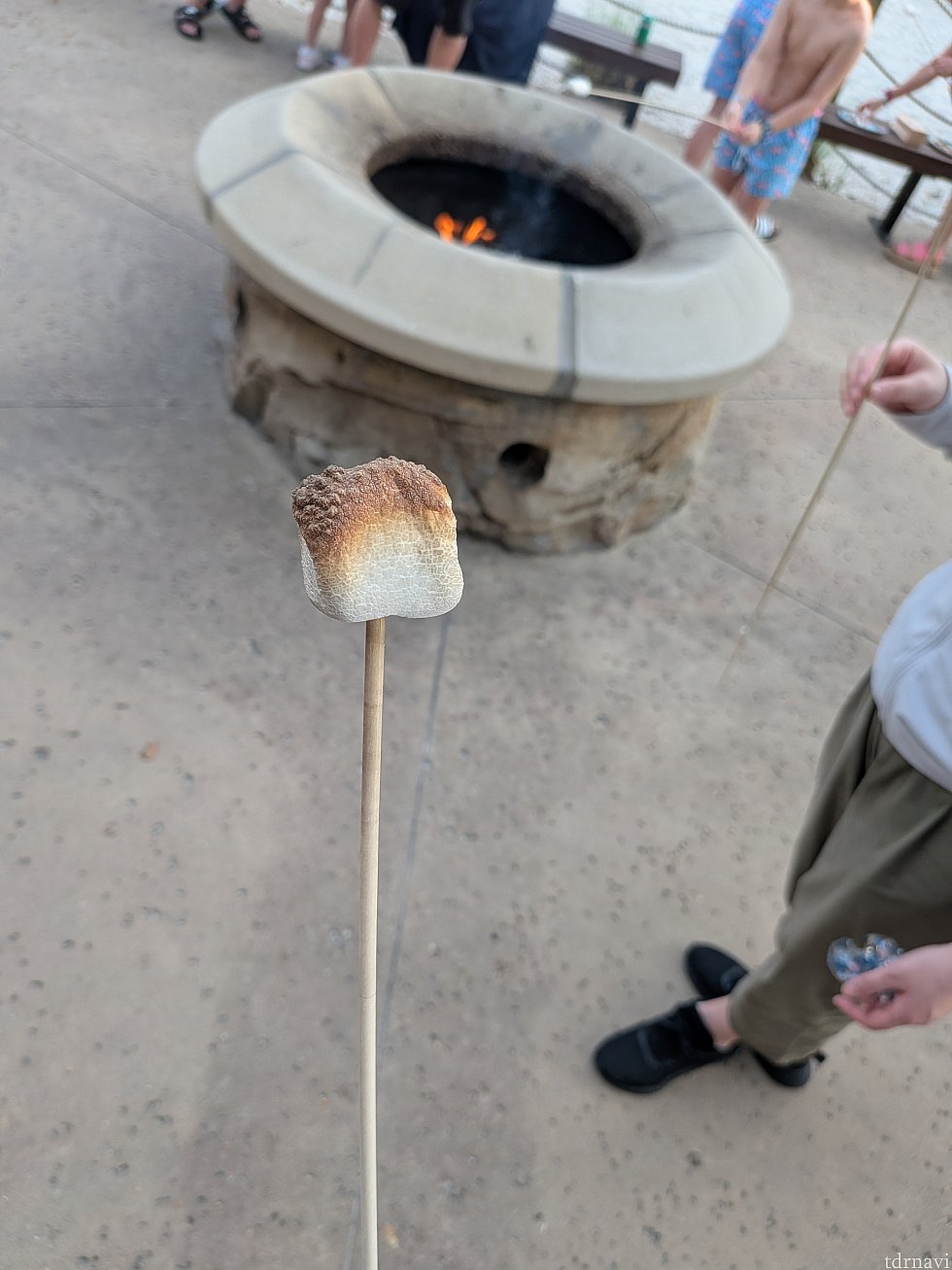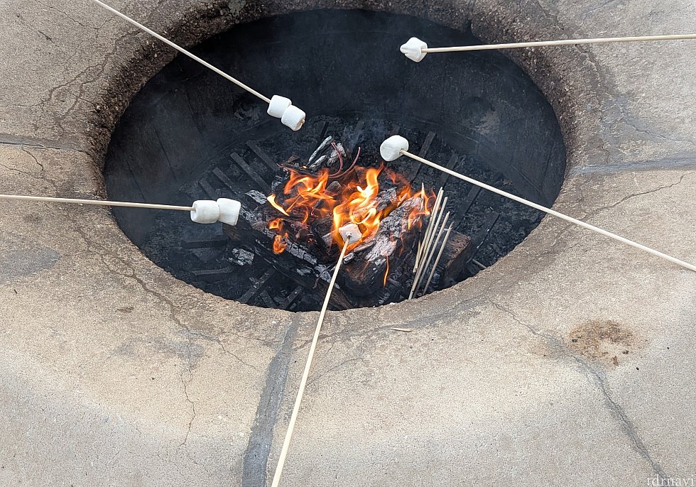 マシュマロだけであれば無料で提供されており、今回は3人で計2袋(1袋6個入り)をいただきました。マシュマロをチョコレートとクラッカーで挟んで食べる「スモア」を楽しみたい場合には、別途有料でキットを購入することも可能です。